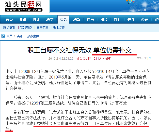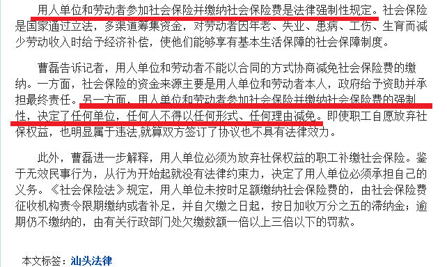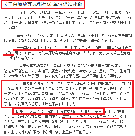例16:题目:“职工自愿不交社保无效单位仍需补交”;