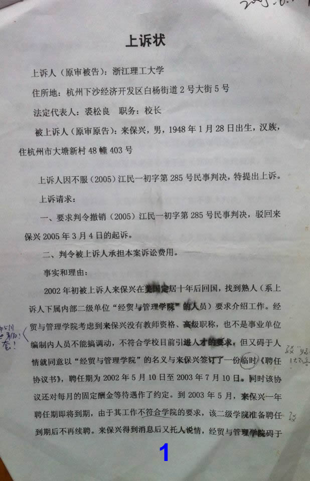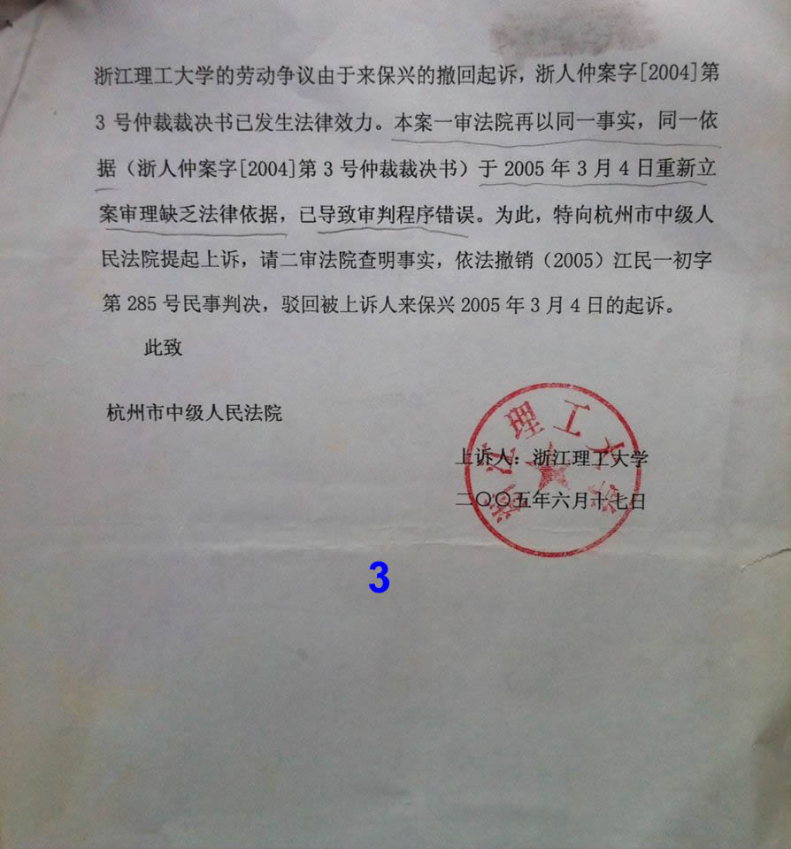 (答辩学校的2005年6月17日的“上诉书”)-几乎唯一沒有引用任何法律及规定的诉讼状!
