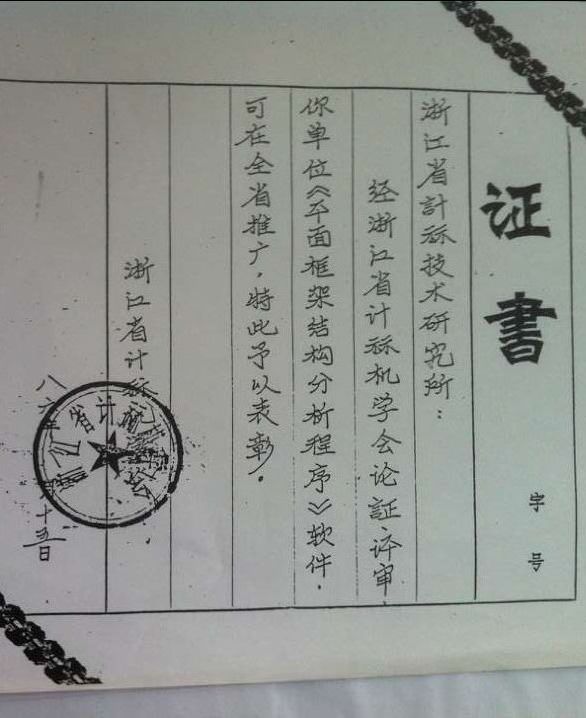 开发②:“中文平面框架结构分析程序”获推广证书奖;