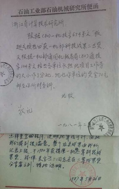 为石化部开发“变相热交换器偏微分方程流量主计算”获得石化部科技二等奖;