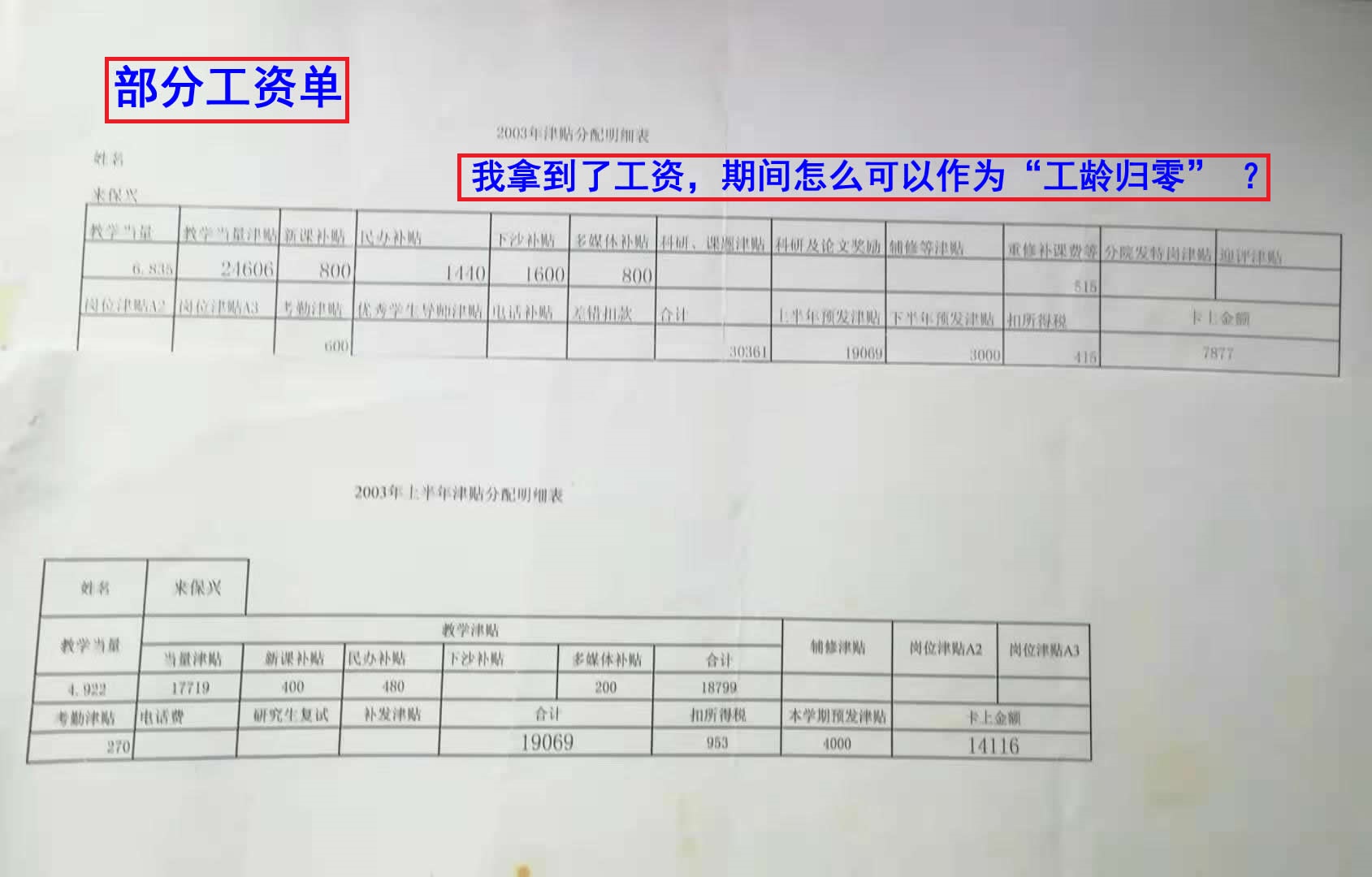 从来未曾对我的任何事项正式正规地在文件中下过下列结论:判刑,“开除公职”,“除名”和“自动离职”等,所以则“工龄归零”从何而来?而以下的内容支持了我的这个主张:从2002年开始至今近20年了,我在学校工作期间正常的社会保险还是未解决!