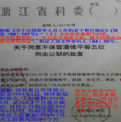 《关于出国留学人员工作的若干暂行规定》的通知(国发〔1986〕107号):“ (十)公派留学人员应按照计划努力学习,按期回国服务。留学期间或留学期满后,一般不得改变留学身份。需要延期者,应提前提出申请,报原派出单位审批。凡是由原单位发放工资的,其在批准逾期不归的,一年内停薪留职,一年后是否保留公职,视不同情况由派出单位决定。”。